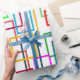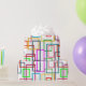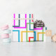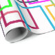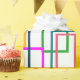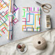 This wrapping paper has a Bauhaus design of overlapping rectangles in various colors.