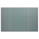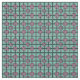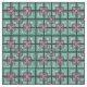 This fabric has an art deco design of overlapping concentric squares in teal and pink.