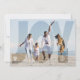 Transparent overlay joy Christmas holiday photo card. The back includes a grey and white snowflake pattern and a photo.