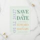 Share your wedding news with this fresh and inviting save-the-date card featuring a soft sage green background with lavender and marigold yellow accents. The minimalist design highlights oversized date numerals behind elegant typography, combining forest green capitals with dusty rose script. Ideal for nature-inspired or garden wedding celebrations with a cheerful, botanical feel.