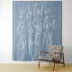 Welcome guests to your wedding or set up an epic selfie station with this simple and elegant backdrop featuring your names and wedding date in white calligraphy script lettering on a dusty blue background, oversized to take up the entire design area. Enter your personalization, then use the Design Tool to adjust size and positioning for a custom look.