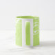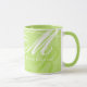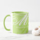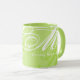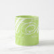 A stylish sharp-green mug-of-coffee with your own special name and initials monogrammed in elegant script font style... unique personalization... sharp green is a trendy nice colour, a medium light shade of yellow-green.