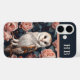 Beautiful phone case featuring a detailed owl illustration surrounded by blooming roses, accompanied by a customizable monogram, perfect for elegant style and nature enthusiasts. ©doodles_designs