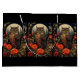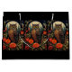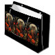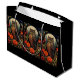 Gift bag with a cool looking owl with a piercing stare. A full moon in the back with a garden of red flowers.