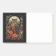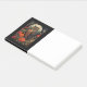 Sticky notes with a cool looking owl with a piercing stare. A full moon in the back with a garden of red flowers.