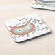 Cork coasters with hand-painted look. Night Owl art/picture originally created in acrylic on paper in brown and aqua giving it a retro look. Owl sits on aqua and gold leafy limbs.