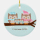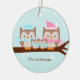 Customizable Christmas ornaments featuring an adorable family of owls perched on a tree branch in soft pastel colours.