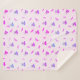 The background is a soft, pale yellow, providing a gentle contrast to the purple and pink elements. The composition is evenly distributed, creating a balanced and visually pleasing pattern. The overall aesthetic is playful and charming, intended for a children's design or decorative use.