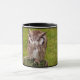 Gorgeous little owl perched quietly waiting. Lovely close up photograph of an owl at rest. Perfect gift for anyone who loves owls, nature and wildlife. An unusual design on a mug for any bird of prey lover.