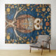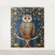 Owl on a branch blue autumn background art nouveau style, William Morris inspired art.