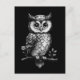 Owl on a flowering branch - black and white postcard