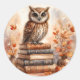 Owl on Bookstack With Fall Leaves Classic Round Sticker
