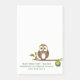 Teacher's note pad done in white, with cartoon graphics of a owl sitting on an apple tree branch. Green text, on the bottom of the pad, is ready to personalize to read what you want. Great for any teacher.