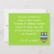 a surprised owl on a lime green band with orange and white polka dot background, will bring a smile to the people you are inviting. created in part with resources from Atenais.