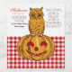 Add a touch of magic to your wine bottles with these customizable wine labels featuring an owl perched on top of a smiling Halloween pumpkin. This rustic yet elegant design has the words "An Owl and a Hoot and a Pumpkin to Boot". The background has a neat Gingham pattern which only adds to the already country and barn style design.