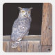 Owl perched in a window square sticker