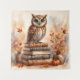 Tapestry features watercolor artwork of a serious owl perched on a stack of books in the fall season, surrounded by autumn decor including a pumpkin. Warm colour scheme includes oranges, browns, and neutrals. Great for owl lovers and bibliophiles! Maybe you're just a girl or guy who loves owls and books...and the autumn aesthetic! If so, this cozy avian academia artwork is for you.