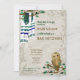 Announce your Bar Mitzvah with a wise owl and beautiful teal green and blue prayer shawls hanging from leafy branches. Coordinated blue and brown stationary completes the look. Wise owl and leafy green branches are versatile for nature, tree of life, rustic forest, woodland themes. Teal green, beige, and blue artwork is perfect for your son's birthday celebration. Natural, rustic forest artwork is also ideal for a Jewish bris ceremony for new baby.