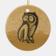 Owl icon on beige grunge background. Symbol of wisdom and wealth.