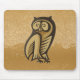 Owl icon on beige grunge background. Symbol of wisdom and wealth.