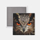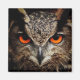 Owl. Color close up color photograph image of an owl's head and face showing beak, orange colored eyes and feathers.