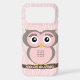 Personalized with your name or you favourite one or two word encouraging quote for your inspiration or maybe even for those close to you to be randomly inspired through the simple words they see in front of them due to you kindly inspiring those you pass by. words are powerful, words inspire, motivate, encourage, spread cheer, love and kindness, cute pink wise kind owl iPhone Cases.