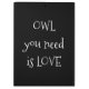 Owl sketch cartoon with heart shaped body and custom text.