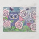 Owls amongst flowers postcard