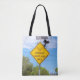 A slightly odd warning sign for Low Flying Owls on an all over printed tote bag that comes in two styles and two sizes