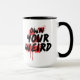 A powerful and rebellious statement piece featuring the phrase "OWN YOUR WEIRD" in thick, black, brush-stroke typography. The text is set against an aggressive, vibrant red splatter and drip effect, giving it a cool, grunge-inspired, or graffiti aesthetic. This design is perfect for those who celebrate individuality, non-conformity, and expressing their unique personality fearlessly. An excellent graphic for streetwear, t-shirts, and posters.