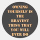 ‘‘Owning yourself is the bravest thing that you will ever do.’‘ simple elegant and encouragement quote with simple text sticker for gigt labels. it is fully customizable you can change it as per your choice