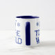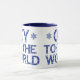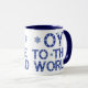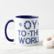 Bleu et blanc, Amusant et festif Humour de vacances Mug OY au monde avec des flocons de neige bleus