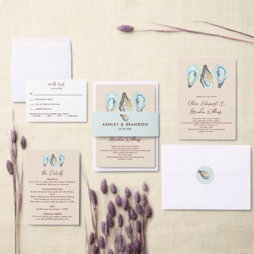 This elegant oyster-themed wedding RSVP card is a beautiful addition to a coastal or seaside invitation suite. Featuring soft watercolor oyster artwork, it provides guests with a way to respond and share their attendance and meal selections. Perfect for beach, nautical, and ocean-inspired weddings, this RSVP card can be customized with your wording, fonts, and colors to match your wedding aesthetic.