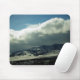 A photograph of snow covered mountains about to be blanketed by a large white cloud.
