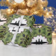 P-38 Lightning Christmas in scalloped white frame on festive green background. This wrapping paper is available in many different widths and lengths. Perfect for any fan of World War 2 combat airplanes.