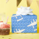 P-38 Lightning white silhouette with blue and white background. Works for any celebration. This wrapping paper is available in many different widths and lengths. Perfect for any fan of this famous fork-tailed World War 2 combat airplane.