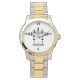 Very good quality watch that looks good whether dressing up or down. The band is sturdy. The watch is rather large so might not work for smaller folks. Recommended as a good gift. Printing is just a touch light but adds a nice touch of personalization.