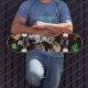 A skateboard featuring the fantasy creatures from P is for Phoenix.