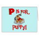 Red text reads "P is for Puppy" on these cute puppy design T-shirts, mugs, tote bags, cards, and more, great for anyone of any age who loves dogs!