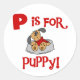 P is for Puppy Tshirts and Gifts Classic Round Sticker