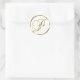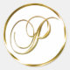 P Monogram Faux Gold Envelope Or Favour Seal. These classic round stickers are printed with non metallic ink on a flat sticker to look like gold. They are not beveled or embossed monograms but are designed to look like they are beveled or embossed monograms. These gold monogram seals are printed on a white background unless you select a different colour background before you proceed to checkout. In addition to being pretty wedding stationery supplies, these elegant wedding invitation envelope seals also make great monogrammed custom Christmas card seals, personalized holiday greeting card envelope seal stickers and customized Xmas card monogram seal stickers.