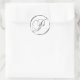 P Monogram Faux Silver Envelope Or Favour Seal. These classic round stickers are printed with non metallic ink on a flat sticker to look like silver. They are not beveled or embossed monograms but are designed to look like they are beveled or embossed monograms. These silver monogram seals are printed on a white background unless you select a different colour background before you proceed to checkout. In addition to being pretty wedding stationery supplies, these elegant wedding invitation envelope seals also make great monogrammed custom Christmas card seals, personalized holiday greeting card envelope seal stickers and customized Xmas card monogram seal stickers.
