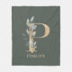 Lettre P monogramme floral. Lettre P en texture brun doré accentué de feuilles verts composés d'aquarelle, fleurs de fleurs et poussière d'or. Personnalisé avec nom dans la police correspondante.