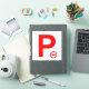 P Plate 90 White / Red Sticker