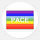 This peace flag has seven horizontal bands in purple, blue, turquoise, green, yellow, orange and red. In the centre is the word ‘PACE’, which means ‘peace’ in Italian. This version of the flag dates from 1961. Image source: Fibonacci / Wikipedia http://en.wikipedia.org/wiki/File:PACE-flag.svg Released under a Creative Commons Attribution-Share Alike 3.0 Unported license