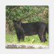 Pacer le chat panthère noir dans l'herbe et la zone boisée.