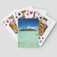 Playing cards or poker deck with a desert or uninhabited adventure Island with palm trees and a dark blue sky in the turquoise water of a lagoon in the Pacific archipelago French Polynesia