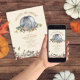Illustration of a pumpkin decorated with botanical designs with pacifiers. Autumn leaves design at bottom.