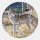 Pack of wolves in the forest painting classic round sticker