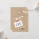 Cette carte de faire-part mobile et l'invitation à la fête de réchauffement de la nouvelle maison illustrent une silhouette unique de clé de maison blanche, attachée avec des cordes à un arrière - plan kraft en carton brun. Un timbre-poste rond avec un monogramme personnalisé ou une initiale est à l'avant de la carte. Une petite note blanche est attachée à ce paquet avec la nouvelle adresse et le nouveau nom personnalisables de l'expéditeur.